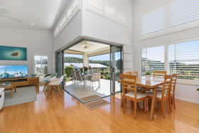 Nestled in amongst lush greenery with stunning views over treed hills to Mt Coolum , this most coveted design offers luxury living in a private, safe and peaceful setting. Double height ceilings with shuttered clerestory windows promotes passive cooling and is complemented by ducted air conditioning and fans throughout. This lovely open plan design boasts a superb chefs kitchen, complete with state of the art AEG appliances and butlers pantry to complete. Stone benchtops complement the soft winter white cabinetry and centre island/breakfast bar comes complete with luxury waterfall sides. Designed to impress, this open plan home has seamless flow from the spacious living areas to an expansive tiled rear entertaining deck through large stacker doors offering maximum airflow, space and functionality. Automated outdoor blinds complete this package as low maintenance gardens wrap to create the perfect peaceful haven.