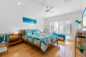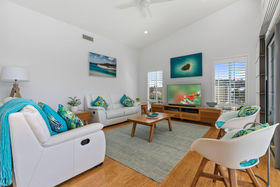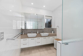 The generous master suite is situated at the rear of the home and is complemented by a large walk in robe and generous ensuite. A second bedroom is serviced by the main bathroom and is situated at the opposite end of the home ensuring privacy and practicality. A centrally located multi purpose room offers further flexibility to this sensational home. Decorated in neutral tones and high-end finishes this property is the complete package with nothing to spend. Flooded with natural light featuring plantation shutters throughout, this home offers the finest in modern compact living without compromising lifestyle.
