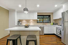 * Stunning kitchen with stone bench tops, quality appliances incl. Gas cooktops & 900mm oven, breakky bar & ample storage