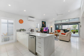 The soaring ceilings of this most coveted of designs sets it apart and in a calibre of its own in the award winning 'Halcyon Lakeside'. This stunning 2 bedroom home boasts an additional multi function room, generous living spaces inside and out and has been designed and built with the most fastidious owner in mind. Nestled in amongst lush greenery and perfectly maintained established gardens this practical design offers luxury living in a cleverly designed home without compromising space or creature comforts. Seamless flow from the spacious living areas to an expansive rear entertaining deck through large stacker doors allows for maximum airflow, space and practicality. Outdoor blinds complete this package with stunning low maintenance gardens wrapping around to create a private, peaceful sanctuary. Double height ceilings with clerestory windows promotes passive cooling and is complemented by split system air conditioning and fans throughout. This lovely open plan design boasts a superb chefs kitchen, complete with state of the art AEG appliances; stone bench tops compliment the soft white cabinetry and centre island/breakfast bar comes complete with waterfall sides. The master suite is situated at the rear of the home and enjoys direct garden access. Complemented by a large walk in robe and generous ensuite, there is no compromise on lifestyle or luxury. A second ensuited bedroom is privately located toward the front of the home and together with the handy MPR offers function and flexibility. Decorated in neutral tones and high-end finishes this property is the complete package with nothing to spend. Flooded with natural light and plantation shutters, this home offers the finest in modern compact living without compromising lifestyle. Contemporary 2 ensuited bedrooms & multi purpose room Spacious kitchen with state of the art appliances Open plan living at its finest Seamless indoor outdoor flow Split system air conditioning & fans throughout Double car garaging with plenty of storage Resort style plantation shutters This sensational home not only offers quality and every attention to detail, it is energy efficient, low maintenance and offers peace of mind and the security of a gated community. Immerse yourself in the 5 star facilities on offer and the community spirit synonymous with the Halcyon name and enjoy the lifestyle it affords its residents.
