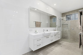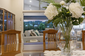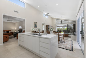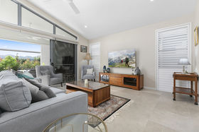 Contemporary open plan design and soaring ceilings throughout are further enhanced by clerestory windows that illuminate and promote passive cooling. The heart of the home is however the stunning kitchen; complete with Zip tap, state of the art AEG appliances and substantial butlers pantry. Soft muted tones of white and dove grey stone benchtops compliment the winter white cabinetry and generous centre island complete with luxury waterfall sides. The spacious dining zone opens to a sensational breakfast terrace, a perfect sheltered harbour from the rest of the world. A separate media room adds yet another dimension and serves as a quiet retreat from the main living zone.