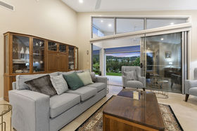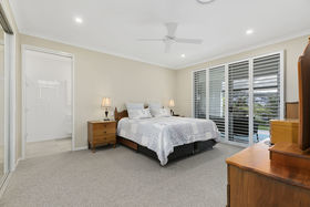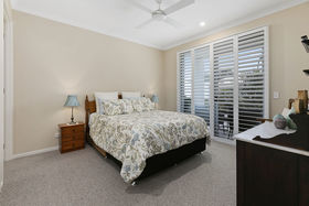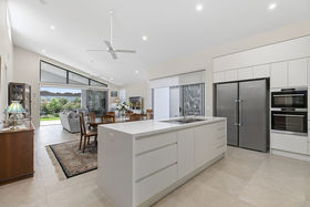 Exuding luxury & resort lifestyle in a low maintenance package, this residence sits proudly on one of the largest blocks in the estate and boasts a most generous 329m2 floor plan. Seamless flow from spacious living areas to an expansive rear entertaining terrace through large stacker doors allows for maximum airflow, space and practicality... this home is the perfect entertainer. Automated sunshade outdoor blinds and plantation shutters ensure privacy and protection from the elements in this well considered design and build. Manicured lawns, stunning gardens and water features wrap the grounds creating a private, peaceful retreat.