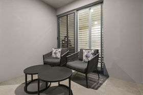 The master suite is located at the rear of the home and enjoys direct garden and courtyard access. Complemented by a large walk-in robe and ensuite; this spacious retreat is the perfect sanctuary. A second ensuited bedroom occupies the opposite end of the home and steps to a private front terrace enjoying pretty garden views. An additional generous built-in bedroom/office occupies a private position at the end of the entry hall ensuring privacy and practicality in the home.