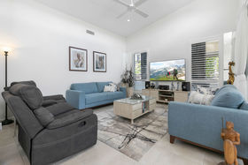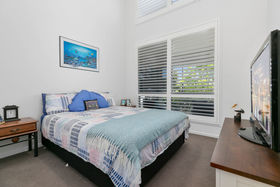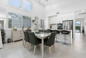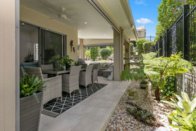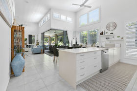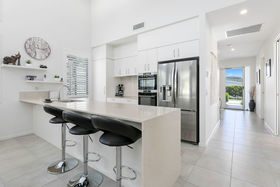 Nestled behind lush greenery and located on a stunning 'end' block, this most coveted design offers luxury living in a private, safe and peaceful setting. Towering ceilings with shuttered clerestory windows promotes passive cooling and are complemented by ducted air conditioning and fans throughout. This lovely open plan design boasts a superb chefs kitchen complete with state of the art AEG appliances and induction cooktop. Almond toned stone benchtops complement the soft winter white cabinetry and the island bench comes complete with luxury stone waterfall drop.